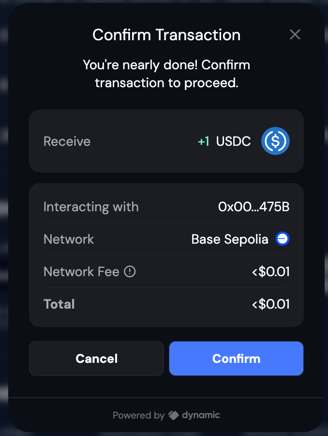 Dynamic’s transaction simulation shows detailed transaction previews before execution. To enable:- Go to your Dynamic dashboard