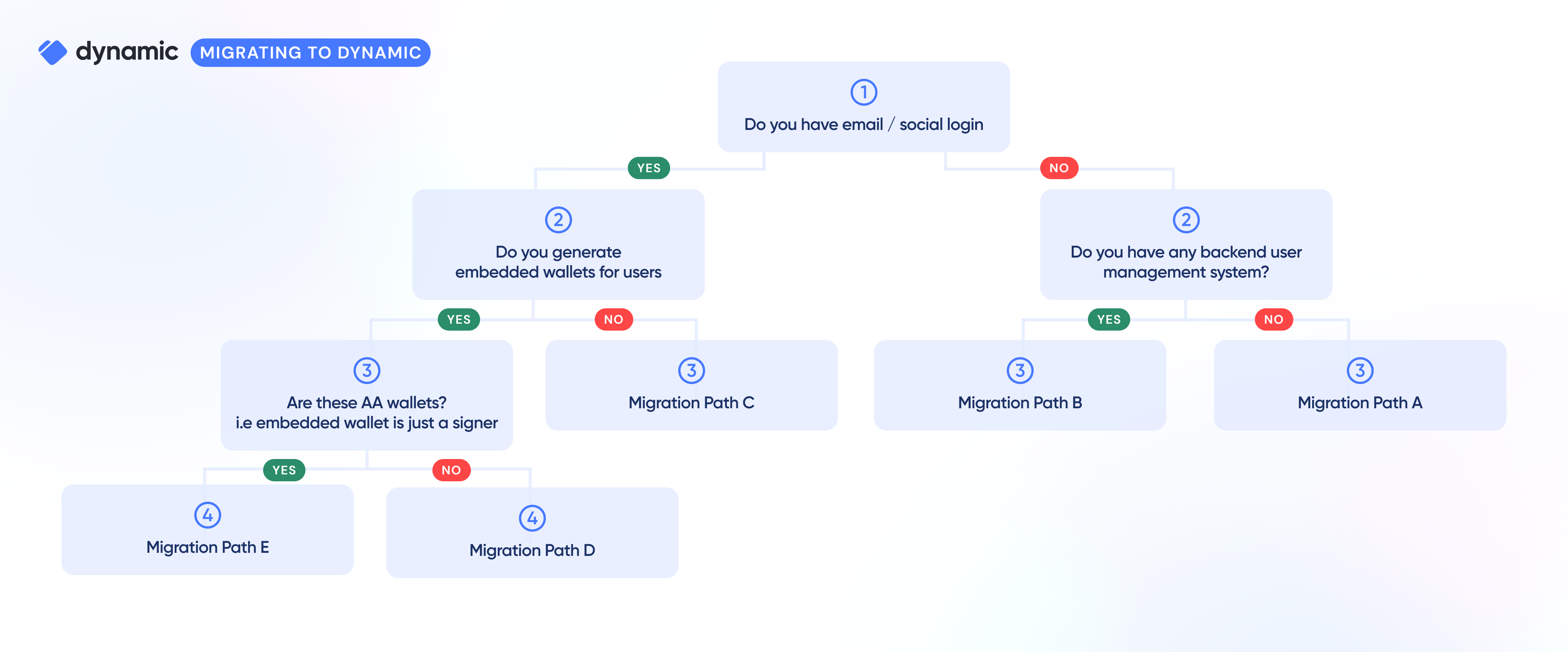 There are really two options here:- Keep current users in their existing embedded wallets and generate Dynamic wallets for new users